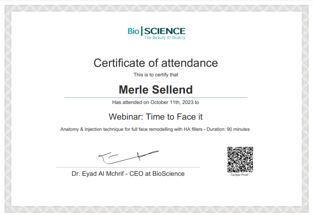 Estonian Health Care Board has granted Dr. Sellend activity licence no L02035 for practicing plastic surgery.